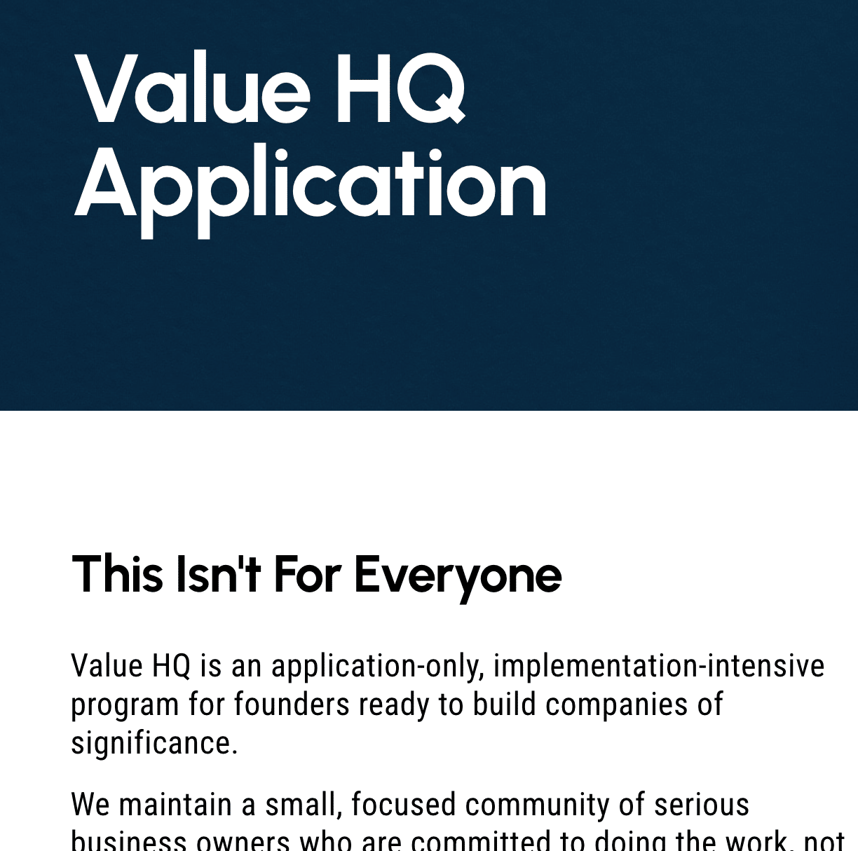 This is The V.A.L.U.E. Email. Some ideas I’ve been considering that might also help you. Today’s word count is 415. It took me 54:02s to read this. __________________________ V – Vision When building things, conventional wisdom suggests defining a custom avatar for which you are building. I find that it's equally as powerful to describe and put in words who it is not for. Here's a real-world example from our website. There's power in knowing who you do not serve. A – Action Use this...